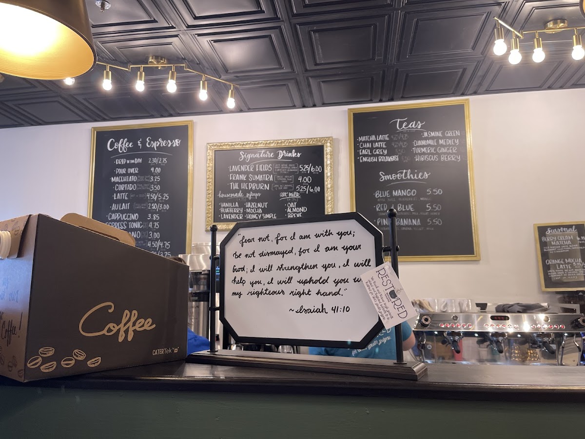 Wrapping up, the menu at Restored Mission Shoppe offers a thoughtfully curated selection that balances simplicity with charm, making it easy to find something appealing whether you’re in the mood for a quick coffee or a refreshing treat. Standouts in the coffee lineup include the smooth Cortado 4oz ($4) alongside classics like Drip Of The Day and Cold Brew Espresso Shot, while tea lovers can enjoy comforting options such as London Fog Tea (Hot 8 Oz Only) and more unique blends like Blueberry Cream Matcha. The drink menu expands with creative specialties like the Maple Butter Cold Brew and Cupid's Caramel Latte, adding a seasonal touch that keeps things interesting. For something fruitier, the smoothies-Pink Banana Smoothie, Blue Mango Smoothie, and Red & Blue Smoothie-offer vibrant alternatives, while the simple Lemonade rounds out the frozen options. Additionally, items like Housemade Syrup 4oz, Housemade Syrup 8oz, and bagged coffees such as Cultivate Better Together Blend 13oz provide take-home options for regulars. Overall, the menu feels approachable yet distinctive, with fair pricing and a cozy variety that reflects a café focused on both quality and community.